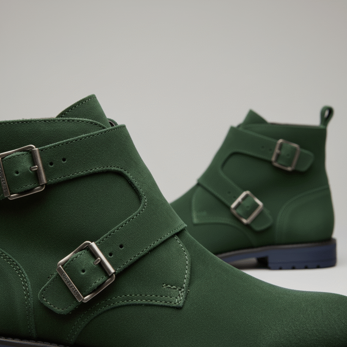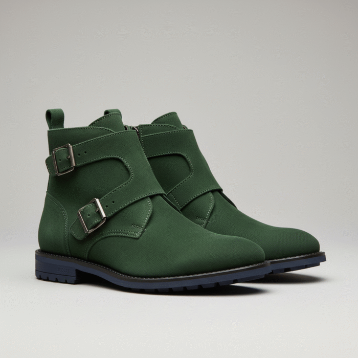 Introduction: The Men’s Deep Forest Green Suede Double Monk Strap Ankle Boots are your definitive statement classic elegance meets rugged Canadian versatility.
