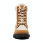 In-Depth Details Feel the soft, luxurious embrace of cream faux shearling, a true sanctuary from the chill, meticulously integrated from cuff to lining. The finely woven beige textile, thoughtfully contrasted with rich tan synthetic suede, showcases enduring style, crafted to gracefully meet winter’s demands without losing its sophisticated appeal. Observe the precise stitching and the subtle gleam of gold-tone D-ring eyelets – small details that confirm meticulous craftsmanship, setting these boots apart. The substantial black lug sole’s deep, resilient treads are engineered for confident purchase on icy sidewalks and packed snow, a stark contrast to flimsy, flat-soled alternatives. This isn’t just a boot; it’s a meticulously crafted winter companion, designed for those who demand both superior performance and sophisticated style.