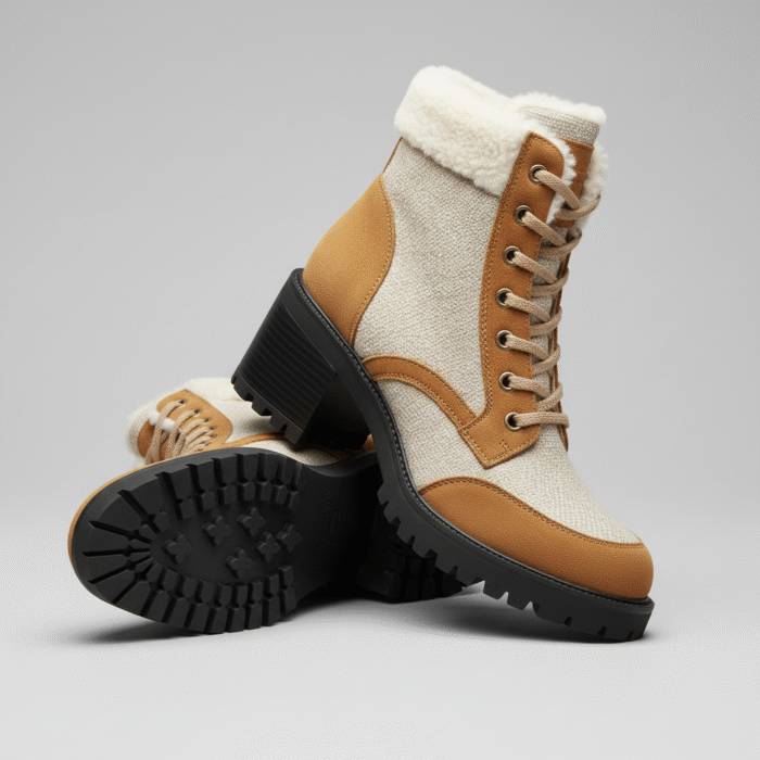 Introduction Stepping out, feeling warm, secure, and undeniably chic, whatever the Canadian forecast. Your search for resilient, stylish winter footwear ends now. Women’s Two-Tone Beige Faux Shearling Ankle Boots – your ultimate solution for uncompromising elegance and comfort.